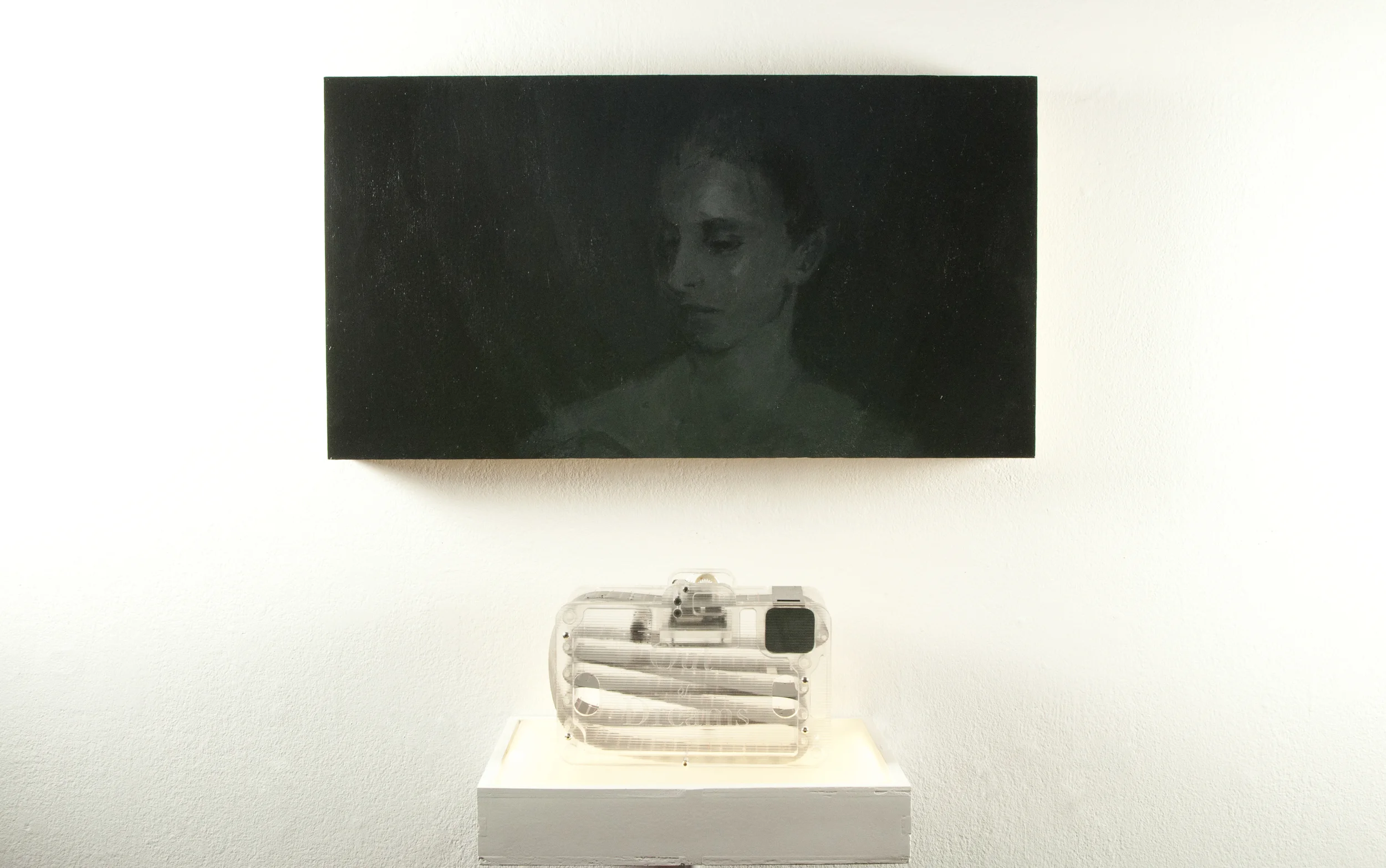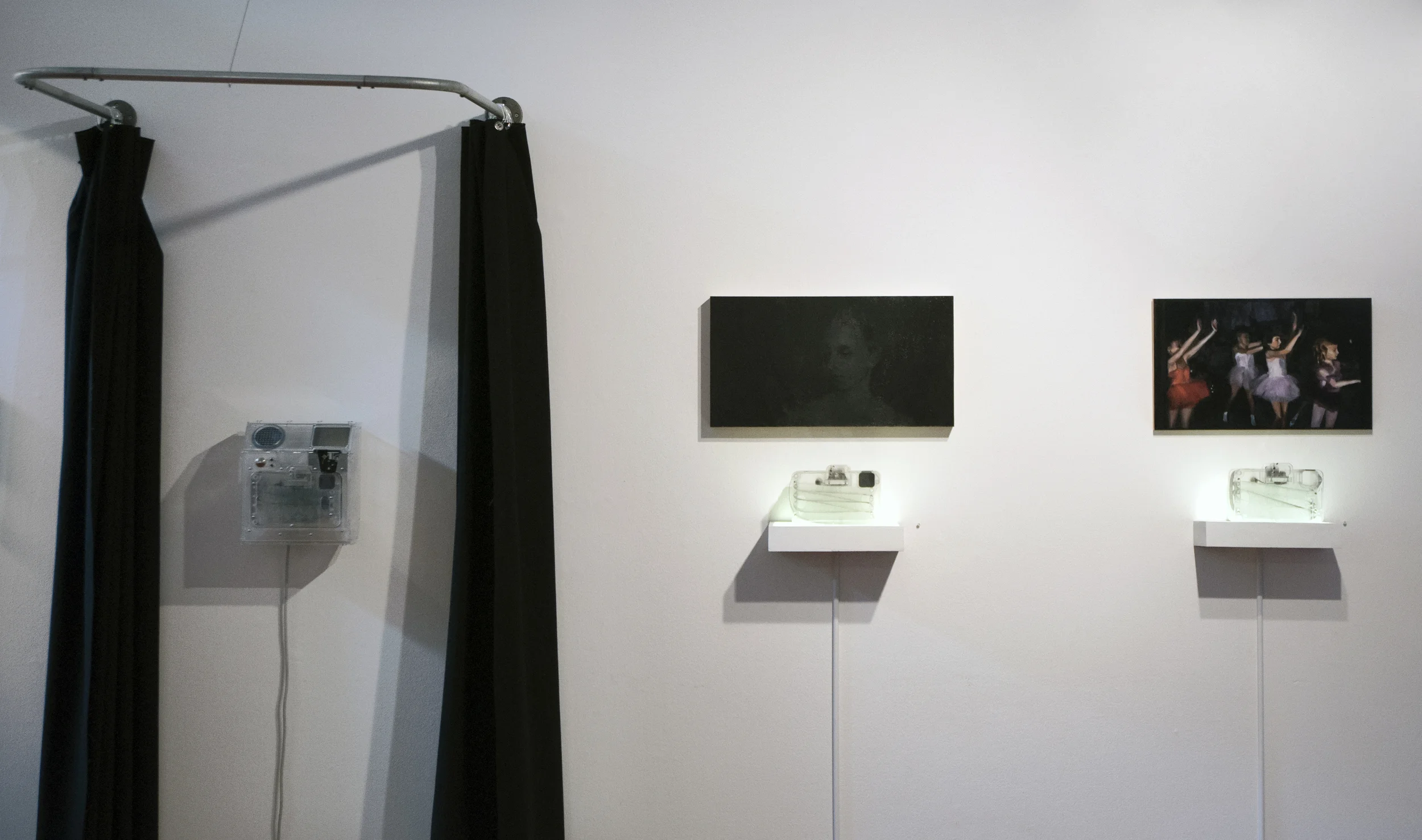 I created paintings and painting-animations for the Memorette that suggest the video content within each cassette, much like a package would. The painting-animations in particular give insight to the process of animation, and in doing so, also suggest the layering process of painting. Unlike traditional animations made from hundreds of separate frames, I made the painting-animations by photographing subtle changes within a single painting.